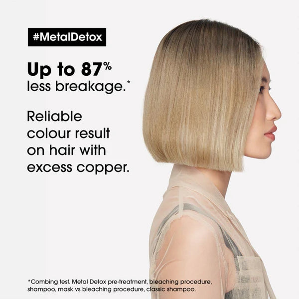 The anti-metal cleansing cream shampoo gently removes metal particles from hair to prevent hair breakage & color shift.